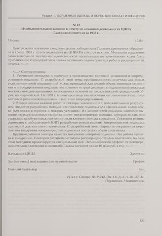 Из объяснительной записки к отчету по основной деятельности ЦНИЛ Главкожзаменителя за 1938 г. Москва, 1938 г.