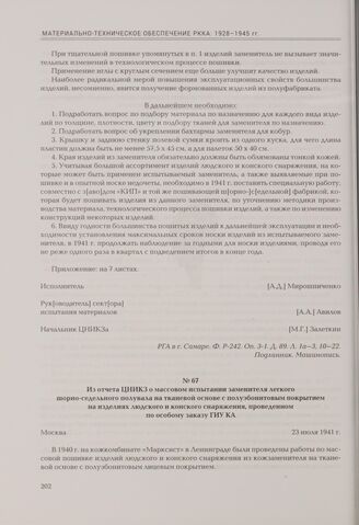 Главная Материально-техническое обеспечение РККА. 1928-1945 гг. Из отчета ЦНИКЗ о массовом испытании заменителя легкого шорно-седел...