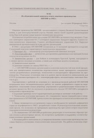 Из объяснительной записки к отчету опытного производства НИУИФ за 1942 г. Москва, [не позднее 20 февраля] 1943 г. // РГА в г. Самаре. Ф. Р-64. Оп. 2-6. Д. 18. Л. 30, 36. Подлинник. Машинопись.