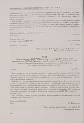Письмо директора ВНИИМП Кириллова профессору Института физики Академии наук СССР А.С. Предводителеву об оказании консультативной помощи по теме «Опытное бесхолодильное хранение мяса и мясопродуктов, облученных ультрафиолетовыми лучами». Москва, 7 ...