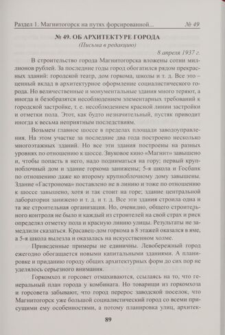 Об архитектуре города. 8 апреля 1937 г. // Магнитогорский рабочий. 1937. 8 апреля.