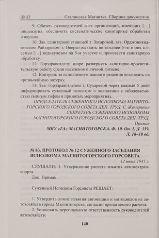 Протокол № 12 суженного заседания исполкома Магнитогорского горсовета. 12 июня 1941 г.