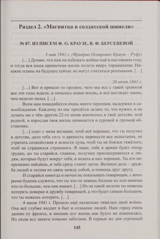 Из писем Ф.О. Краузе, В.Ф. Берсеневой. 1941 г. // Пришла война в Березки. Письма матери [Текст] / сост. О.Ф. Краузе, И.В. Андреева, Е.В. Арсеньева. —Череповец: б. и., 2010.-143 с.