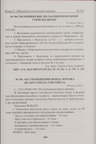 Об уменьшении фонда фуража (из протокола Горсовета). 30 июля 1941 г. // МКУ «ГА» Магнитогорска. Ф. 10. Оп. 1. Д. 355. Л. 276.