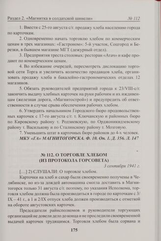 О торговле хлебом (из протокола Горсовета). 3 сентября 1941 г.