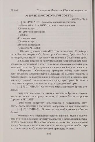 Из протокола Горсовета. 9 ноября 1941 г. // МКУ «ГА» Магнитогорска. Ф. 10. Оп. 1. Д. 357. Л. 1-6.
