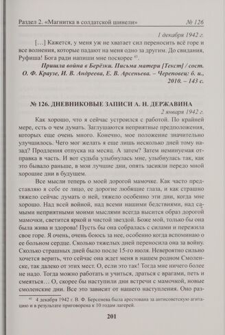Дневниковые записи А.Н. Державина. 2 января 1942 г. // О войне из войны: народная письменность 1941-1945 гг. [Текст] / сост. С.А. Моисеева, Т.И. Рожкова, И.В. Лосева, Е.Б. Дерябина. - Магнитогорск: «МГТУ им. Г. И. Носова», 2015. — С. 99-148.