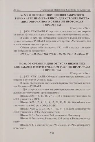 О передаче помещения закрытого рынка артели «Металлист» для строительства листопрокатного стана (из протокола Горсовета). 17 августа 1944 г.