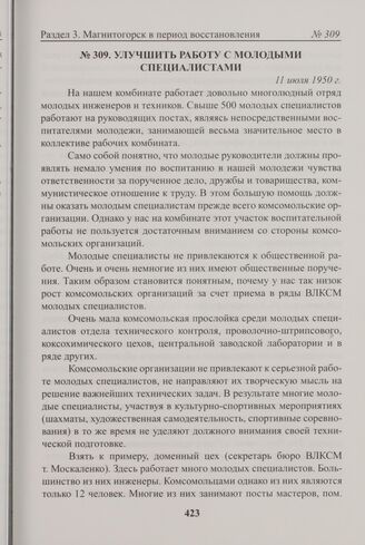 Улучшить работу с молодыми специалистами. 11 июля 1950 г. // Магнитогорский металл. 1950.11 июля.