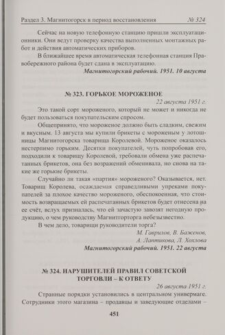 Горькое мороженое. 22 августа 1951 г. // Магнитогорский рабочий. 1951. 22 августа.