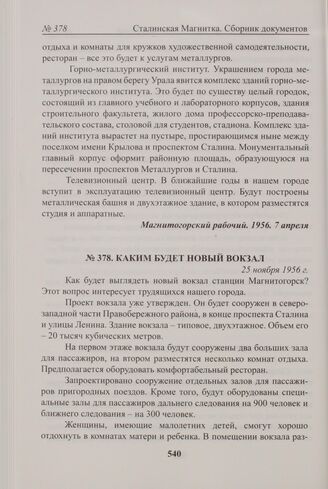 Каким будет новый вокзал. 25 ноября 1956 г. // Магнитогорский рабочий. 1956. 25 ноября.