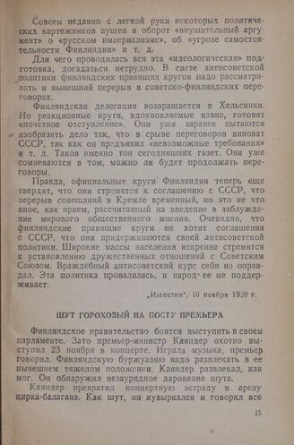 Шут гороховый на посту премьера // „Правда", 26 ноября 1939 г.