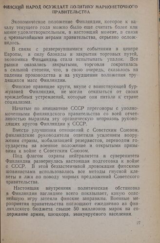 Финский народ осуждает политику марионеточного правительства // „Ленинградская Правда", 29 ноября 1939 г.