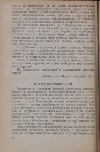 Кто правил Финляндией // Газета „Красный Флот", 4 декабря 1939 г.