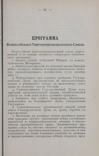 Дореволюционный период -- Политические партии России. Конец XIX - первая треть XX века -- Всероссийский Торгово-промышленный Союз