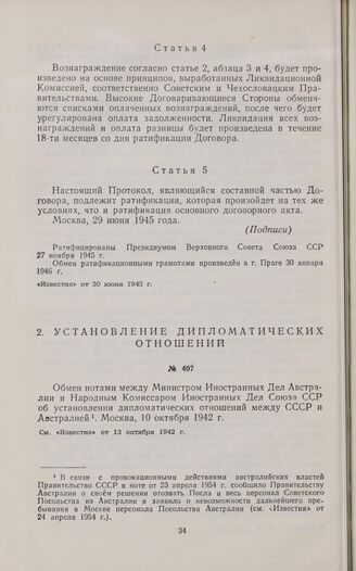 Обмен нотами между Министром Иностранных Дел Австралии и Народным Комиссаром Иностранных Дел Союза ССР об установлении дипломатических отношений. 10 октября 1942 г.