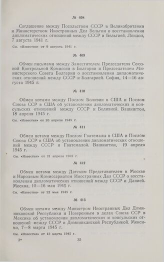 Обмен нотами между Послом Гватемалы в США и Послом СССР в США об установлении дипломатических отношений. 19 апреля 1945 г. // «Известия» от 21 апреля 1945 г.