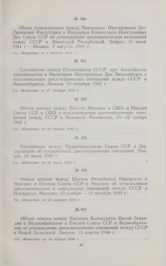 Обмен телеграммами между Министром Иностранных Дел Ливанской Республики и Народным Комиссаром Иностранных Дел СССР об установлении дипломатических отношений. 31 июля-3 августа 1944 г. // «Известия» от 5 августа 1944 г.