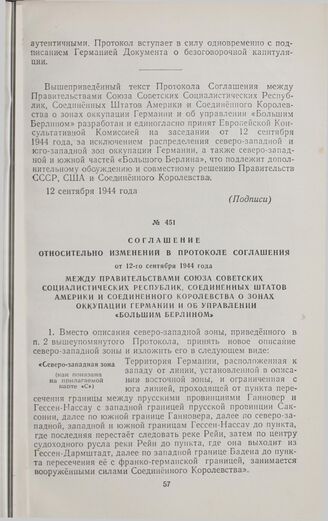 Соглашение относительно изменений в Протоколе Соглашения от 12 сентября 1944 г. о зонах оккупации Германии и об управлении «Большим Берлином». 14 ноября 1944 г.