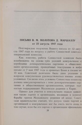 Письмо В. М. Молотова Д. Маршаллу от 23 августа 1947 года