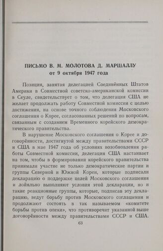 Письмо В. М. Молотова Д. Маршаллу от 9 октября 1947 года