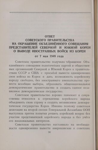 Ответ Советского правительства на обращение Объединенного совещания представителей Северной и Южной Кореи о выводе иностранных войск из Кореи от 7 мая 1948 года