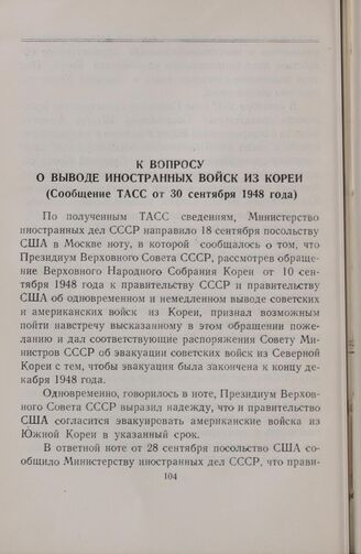 К вопросу о выводе иностранных войск из Кореи (Сообщение ТАСС от 30 сентября 1948 года)