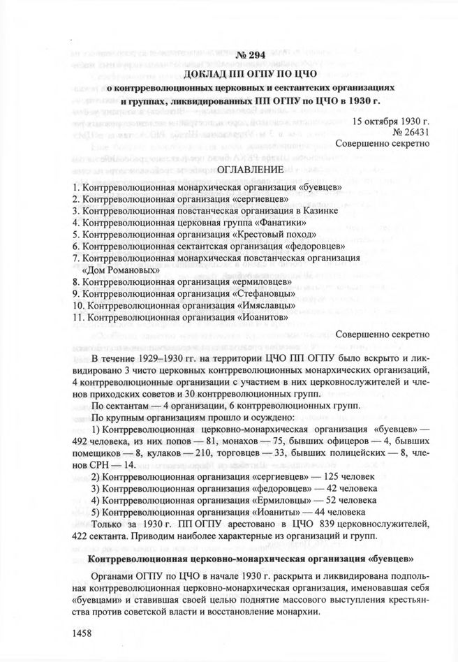 Доклад ПП ОГПУ по ЦЧО о контрреволюционных церковных и сектантских ...